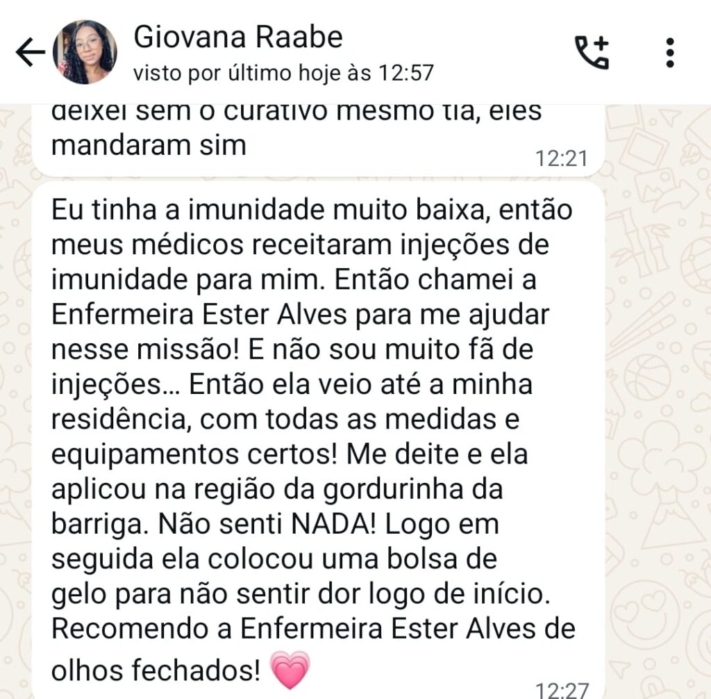 Seja para um pós-operatório, cuidados com idosos, gestantes ou pacientes em recuperação, ofereço um atendimento profissional, empático e seguro, no ambiente mais importante para a saúde: o seu lar.